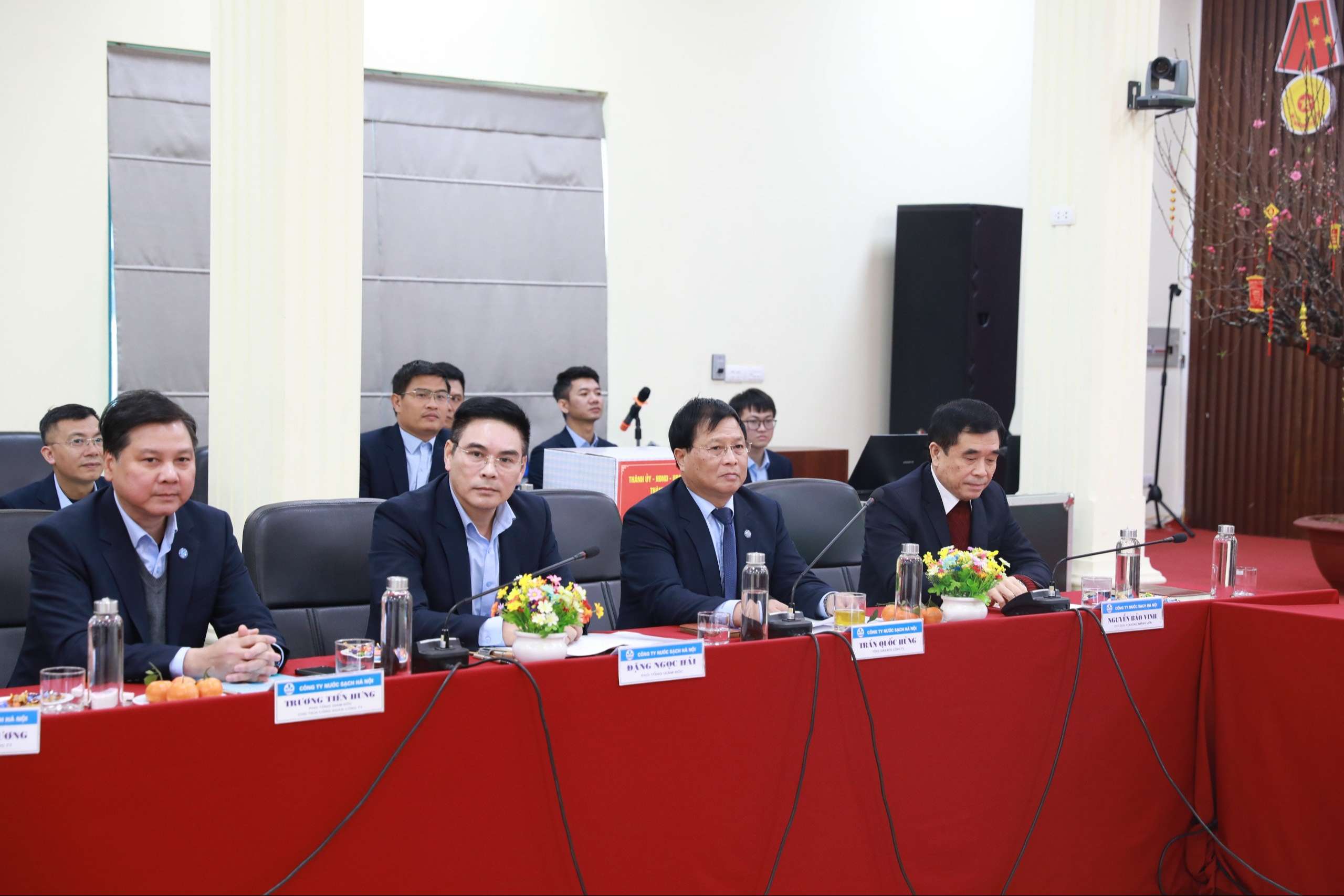 Về phía Công ty Nước sạch Hà Nội có đ/c Nguyễn Bảo Vinh, Bí thư Đảng ủy, Chủ tịch Hội đồng Thành viên; Đ/c Trần Quốc Hùng, Phó Bí thư Đảng ủy, Thành viên Hội đồng Thành viên, Tổng Giám đốc; Cùng các đ/c trong Hội đồng Thành viên, Ban Tổng Giám đốc, Kiểm soát viên, Chủ tịch Công đoàn, Bí thư Đoàn Thanh niên; Thủ trưởng các đơn vị, phòng ban trong toàn Công ty và các phóng viên báo chí đưa tin về buổi làm việc.