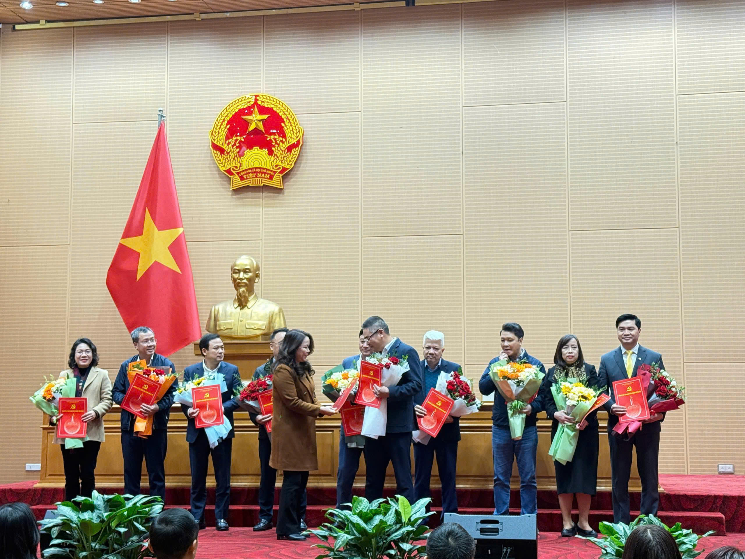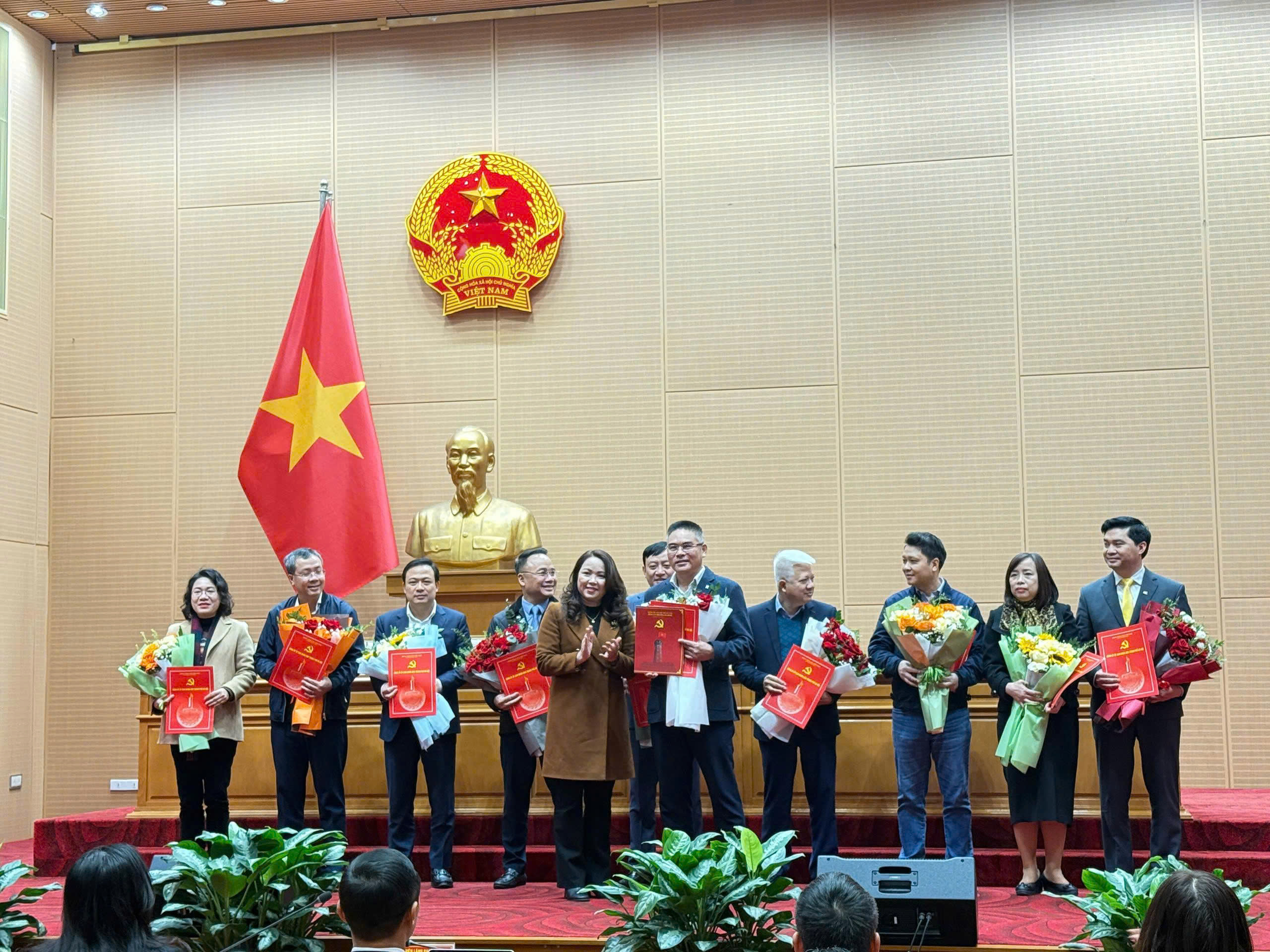 Thành ủy viên, Ủy viên Ban Thường vụ Đảng ủy UBND Thành phố, Giám đốc Sở Nội vụ Nguyễn Minh Long; Phó Trưởng Ban Thường trực Ban Tổ chức Thành ủy Hà Nội Triệu Thị Ngọc và Phó Bí thư Đảng ủy UBND Thành phố Doãn Trung Tuấn đã tặng hoa, trao các quyết định chuyển giao của Ban Thường vụ Thành ủy Hà Nội cho các tổ chức cơ sở Đảng.