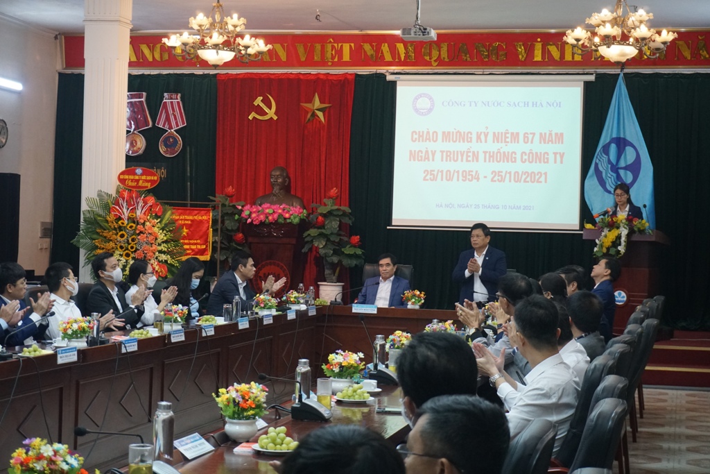 Sáng ngày 25/10/2021, trong không khí cả nước chung tay thích ứng an toàn, linh hoạt, kiểm soát hiệu quả dịch bệnh COVID-19, Công ty Nước sạch Hà Nội đã tổ chức chương trình kỷ niệm 127 năm ngành nước Hà Nội (1894 – 2021) và 67 năm ngày truyền thống Công ty (25/10/1954 – 25/10/2021) để cùng ôn lại lịch sử hào hùng của ngành nước Hà Nội và chia sẻ những thành quả đã đạt được của Công ty trong công tác phòng, chống dịch bệnh COVID-19, đảm bảo cấp nước an toàn trong thời gian vừa qua.