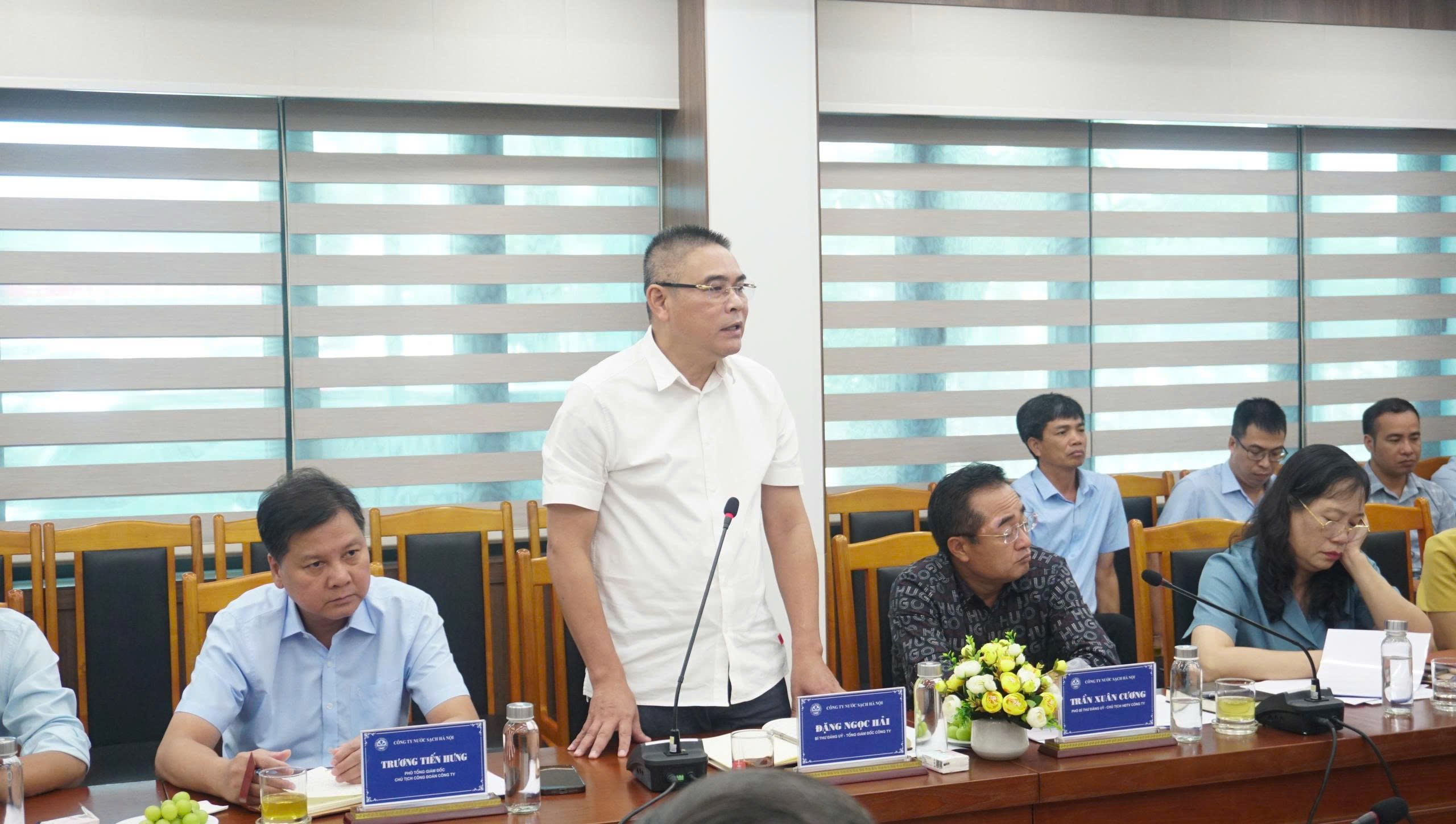 Phát biểu tại cuộc họp, ông Đặng Ngọc Hải, Tổng Giám đốc Công ty Nước sạch Hà Nội cho biết NMN Bắc Thăng Long có vị trí vai trò quan trọng đối với hệ thống cấp nước của Công ty. Đây là nhà máy nước sử sụng nguồn nước mặt để sản xuất cấp nước theo Quy hoạch phát triển bền vững nguồn nước. Để đảm bảo công tác khớp nối trong giai đoạn nâng công suất NMN Bắc Thăng Long lên 300.000 m3/ngđ, Công ty Nước sạch Hà Nội và Công ty Đầu tư phát triển Thủy Lợi tiếp tục chủ động chia sẻ thông tin, định kỳ cập nhật thường xuyên tiến độ thực hiện dự án. Về phía Công ty Nước sạch Hà Nội có phương án lắp đặt hệ thống camera để tăng cường công tác giám sát, quan trắc, bảo vệ an ninh nguồn nước. Xây dựng quy chế phối hợp giữa 2 Công ty với 5 mục tiêu: Lập và đăng ký kế hoạch về nguồn nước thô; Trách nhiệm và nghĩa vụ của 2 bên về công tác cấp nước, xử lý các sự cố; Thông tin về quản lý, vận hành, bảo trì các công trình cấp nước; Công tác đầu tư cải tạo hệ thống cấp nước; Thời gian định kỳ họp đánh giá tăng cường hợp tác giữa 2 Công ty”.