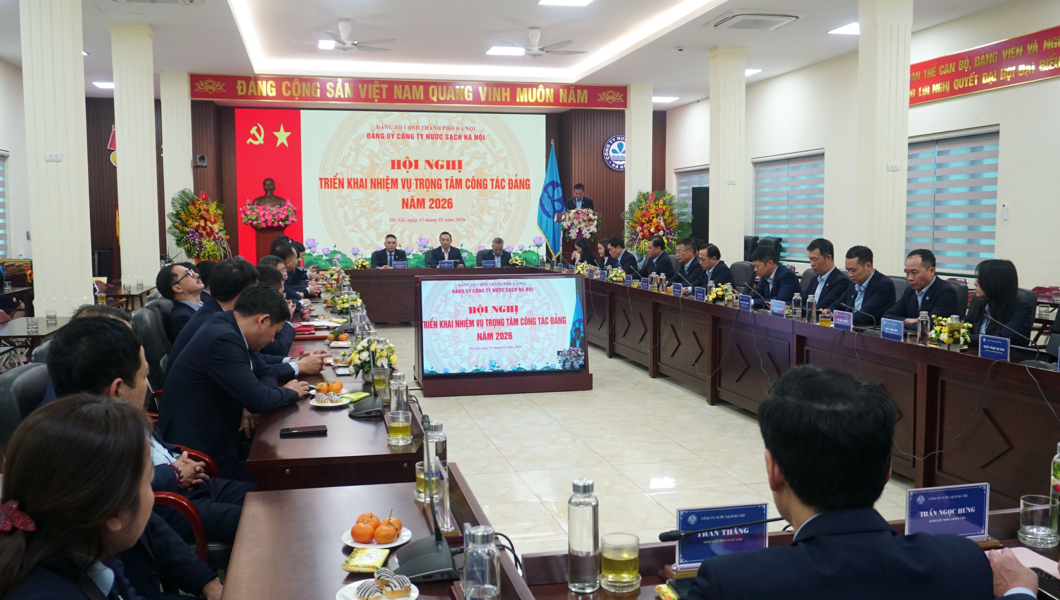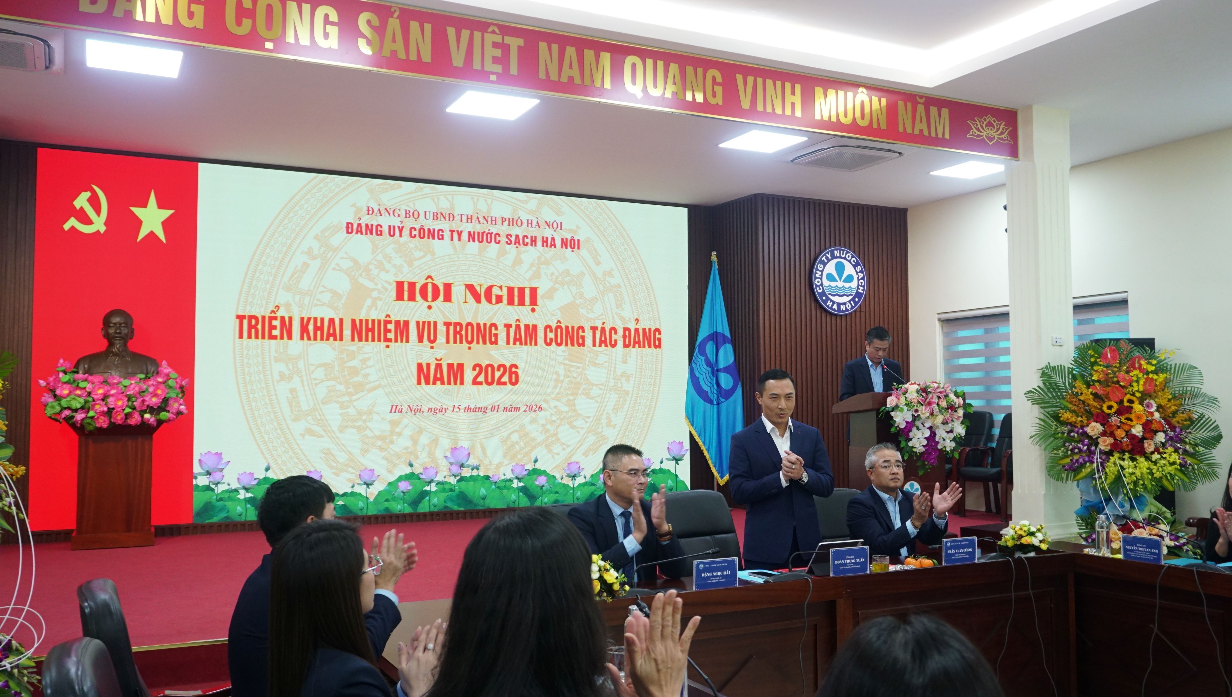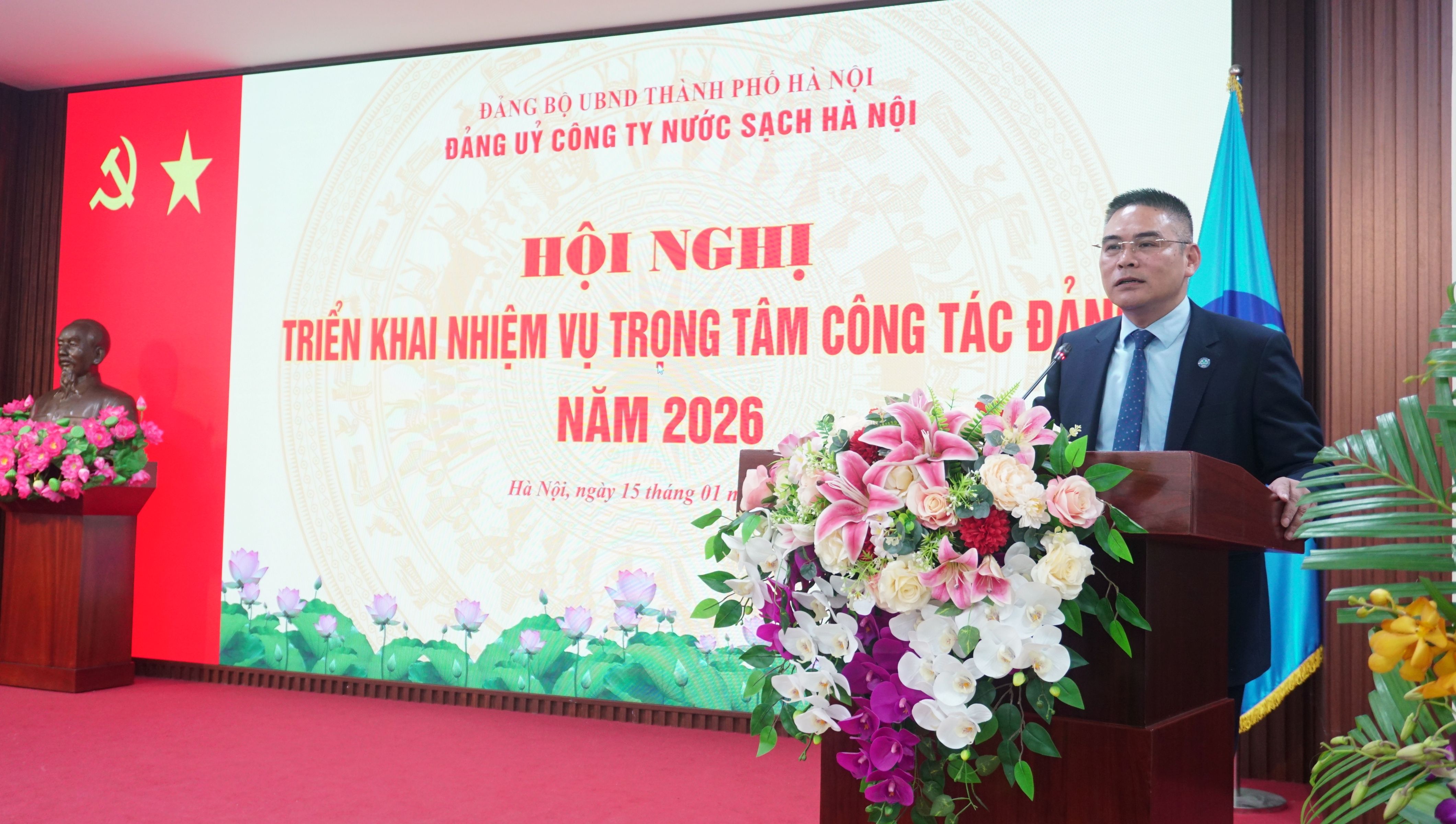 Chiều ngày 15/01/2026, thực hiện chương trình công tác Đảng năm 2025, Đảng ủy Công ty TNHH MTV Công ty Nước sạch Hà Nội đã tổ chức Hội nghị đánh giá chất lượng công tác Đảng năm 2025 và triển khai nhiệm vụ trọng tâm năm 2026. Với tinh thần “Đoàn kết – Dân chủ - Kỷ cương – Đổi mới”, Hội nghị đã đánh giá toàn diện kết quả lãnh đạo, chỉ đạo công tác xây dựng Đảng trong năm 2025; Chỉ rõ ưu điểm, hạn chế, nguyên nhân và bài học kinh nghiệm; Đồng thời xác định phương hướng, mục tiêu, nhiệm vụ và giải pháp trọng tâm năm 2026, đáp ứng yêu cầu xây dựng tổ chức Đảng trong sạch, vững mạnh, gắn với thực hiện thắng lợi nhiệm vụ chính trị của Công ty.