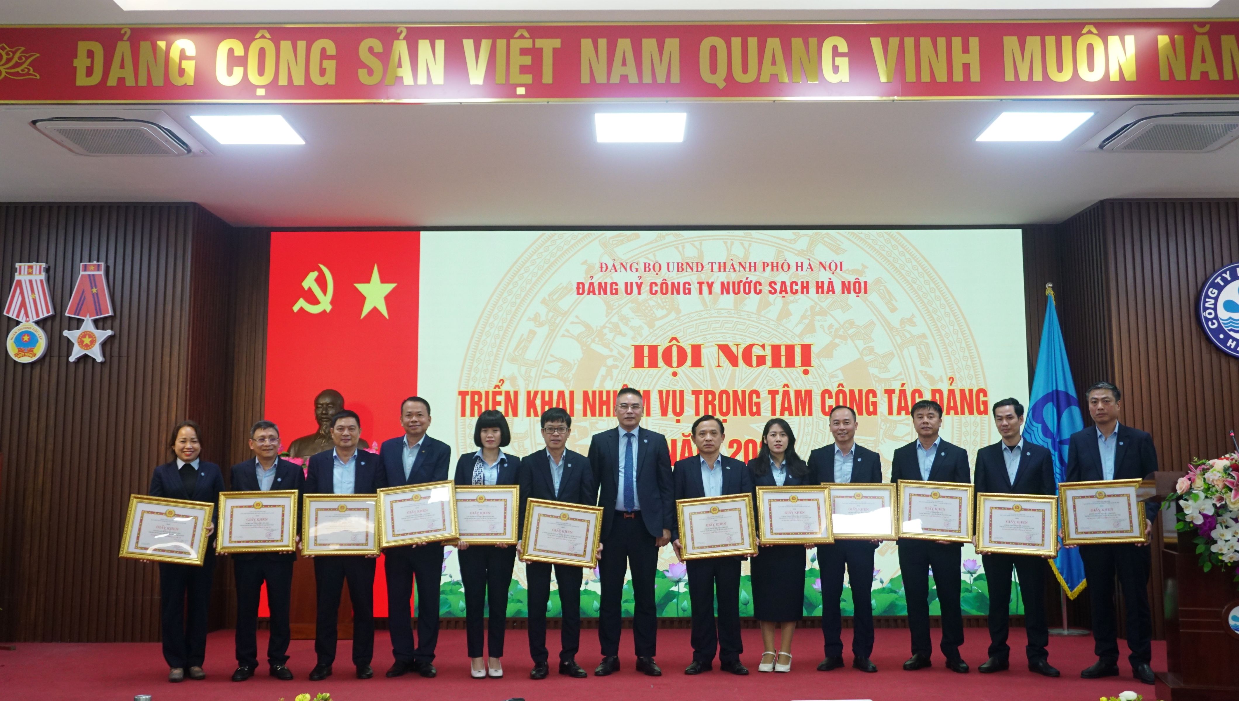 Năm 2025, cấp uỷ Công ty đã triển khai nghiêm túc các nhiệm vụ trọng tâm, nỗ lực phấn đấu, hoàn thành tốt nhiệm vụ công tác xây dựng Đảng, trong đó trọng tâm là tổ chức quán triệt nghị quyết đại hội XIII của Đảng, 10 Chương trình công tác của Thành ủy khóa XVII; Triển khai quán triệt và xây dựng các chương trình thực hiện nghị quyết Đại hội XVIII Đảng bộ Thành phố, Nghị quyết Đại hội Đảng bộ UBND Thành phố Hà Nội lần thứ I, Nghị quyết Đảng bộ Công ty lần thứ IV. Cấp uỷ Công ty đã làm tốt công tác củng cố, nâng cao vai trò hạt nhân chính trị của tổ chức cơ sở đảng, lãnh đạo đảng viên và người lao động trong Công ty đoàn kết, sáng tạo hoàn thành các chỉ tiêu nhiệm vụ đặt ra. Công tác lãnh đạo nhiệm vụ chính trị đạt được những kết quả: Đảm bảo công tác cấp nước sản xuất cấp nước phục vụ người dân Thủ đô cũng như cấp nước phục vụ các sự kiện chính trị diễn ra trên địa bàn Thành phố, cấp nước mùa Hè năm 2025; Cấp nước phục vụ Đại lễ kỷ niệm 80 năm Cách mạng Tháng Tám và Quốc khánh 2/9. Toàn bộ hệ thống cấp nước được vận hành ổn định, liên tục, chất lượng nước được giám sát chặt chẽ, không xuất hiện những khu vực mất nước, thiếu nước. Công tác ứng dụng công nghệ thông tin vào sản xuất kinh doanh tiếp tục được đẩy mạnh, giúp nâng cao chất lượng dịch vụ cấp nước như: Thực hiện dịch vụ công toàn trình; Tổng đài chăm sóc khách hàng 19004600 hoạt động 24/; Ra mắt trung tâm vận hành cấp nước Công ty Nước sạch Hà Nội; Triển khai văn phòng điện tử... Đại hội đại biểu Đảng bộ Công ty đã bầu Ban Chấp hành Đảng bộ Công ty TNHH MTV Nước sạch Hà Nội khóa IV nhiệm kỳ 2025-2030 gồm 15 đồng chí. Hội nghị lần thứ nhất Ban Chấp hành Đảng bộ khóa IV đã bầu Ban Thường vụ Đảng ủy Công ty khóa IV gồm 05 đồng chí trong đó có 01 đồng chí Bí thư và 01 đồng chí Phó Bí thư; UBKT Đảng ủy khóa IV gồm 05 đồng chí trong đó có 01 đồng chí Chủ nhiệm UBKT và 01 đồng chí Phó Chủ nhiệm UBKT. Công tác tổ chức xây dựng Đảng, công tác quản lý Đảng viên được thực hiện chặt chẽ. Tính đến ngày 03/12/2025 đã thực hiện kết nạp Đảng viên cho 12 đồng chí; Công nhận Đảng viên chính thức đối với 21 đồng chí; Số lượng quần chúng tham gia lớp học nhận thức về Đảng: 08 quần chúng; Số lượng Đảng viên mới tham gia lớp bồi dưỡng lý luận chính trị: 10 đồng chí. Triển khai thực hiện Nghị quyết Đại hội đại biểu Đảng bộ nhiệm kỳ 2025 -2030, Đảng ủy Công ty đã ban hành Quyết định số 04 QĐ/ĐU ngày 21/8/2025 thành lập Ban Chỉ đạo 03 Chương trình công tác Đảng bộ Công ty nhiệm kỳ 2025-2030.