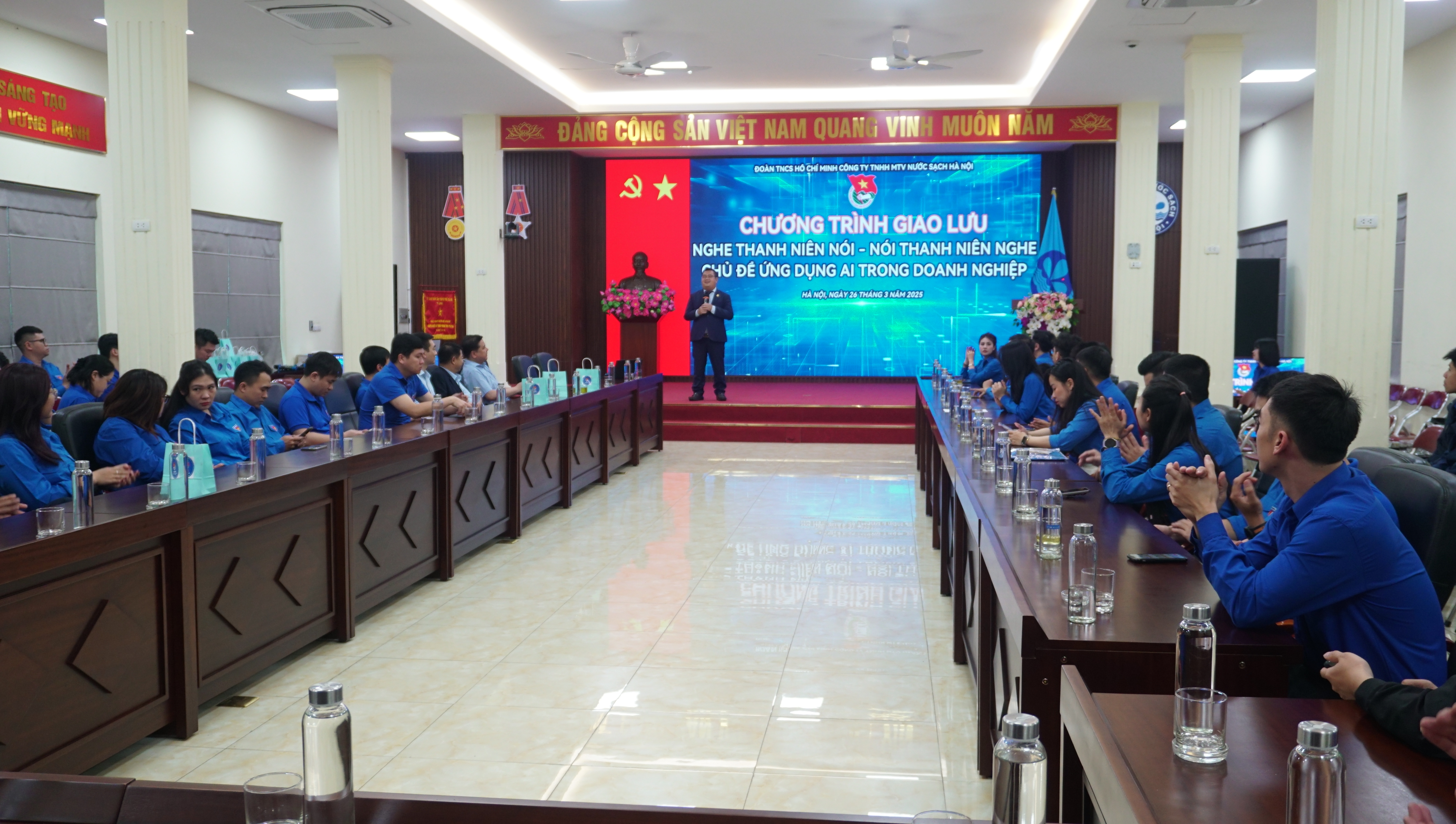 Phát biểu giao nhiệm vụ cho Đoàn Thanh niên trong tháng Thanh niên, ông Đặng Ngọc Hải, Tổng Giám đốc khẳng định vai trò xung kích đi đầu của đội ngũ thanh niên trong tất cả các khâu sản xuất từ các nhà máy nước đến công tác lưu thông phân phối trên mạng lưới. Ban lãnh đạo Công ty ghi nhận, biểu dương những nỗ lực của các Đoàn viên thanh niên trong mọi phong trào thi đua lao động sản xuất cũng như trong các hoạt động thiện nguyện, tết trồng cây, phong trào thi đua xanh sạch đẹp tại từng đơn vị. Năm 2025 là một năm quan trọng để thực hiện thắng lợi các mục tiêu, chỉ tiêu của Nghị quyết Đảng bộ Công ty. Đoàn Thanh niên Công ty Nước sạch Hà Nội cần xây dựng kế hoạch hoạt động bám sát các nhiệm vụ chính sau: Đẩy mạnh công tác chuyển đổi số, áp dụng khoa học kỹ thuật trong lao động sản xuất, nâng cao hiệu quả công tác quản lý, điều hành, chống thất thoát thất thu nước sạch. Đội ngũ thanh niên trẻ với thế mạnh về tri thức và công nghệ thông tin phải phát huy vai trò chủ động của mình ngay từ đơn vị, đồng hành cùng Chính quyền, tổ chức Công đoàn nghiên cứu, sáng tạo, đổi mới phương thức làm việc tăng năng suất lao động; Không ngừng học tập trau dồi kiến thức trong công tác cải cách hành chính nâng cao chất lượng dịch vụ cấp nước cho nhân dân; Giữ gìn và phát huy văn hóa HAWACOM ngày một vững mạnh.