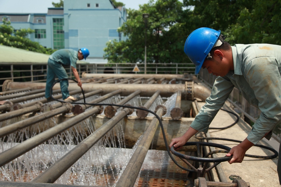 Cùng trong chuyến thăm và làm việc tại trụ sở Công ty Nước sạch Hà Nội, Phó Chủ tịch UBNDTP Nguyễn Văn Khôi đã cùng các đồng chí trong Ban lãnh đạo Công ty NSHN đi kiểm tra tình hình sản xuất nước của Nhà máy nước Yên Phụ.