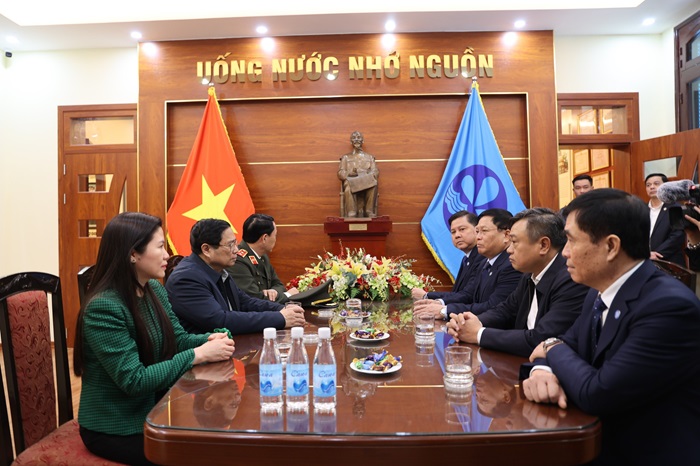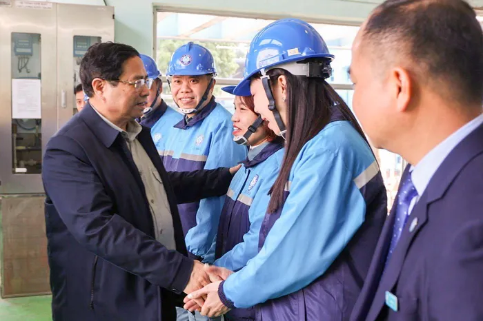 Thủ tướng Chính phủ Phạm Minh Chính đến thăm và chúc Tết các cán bộ, công nhân viên tại Công ty Nước sạch Hà Nội